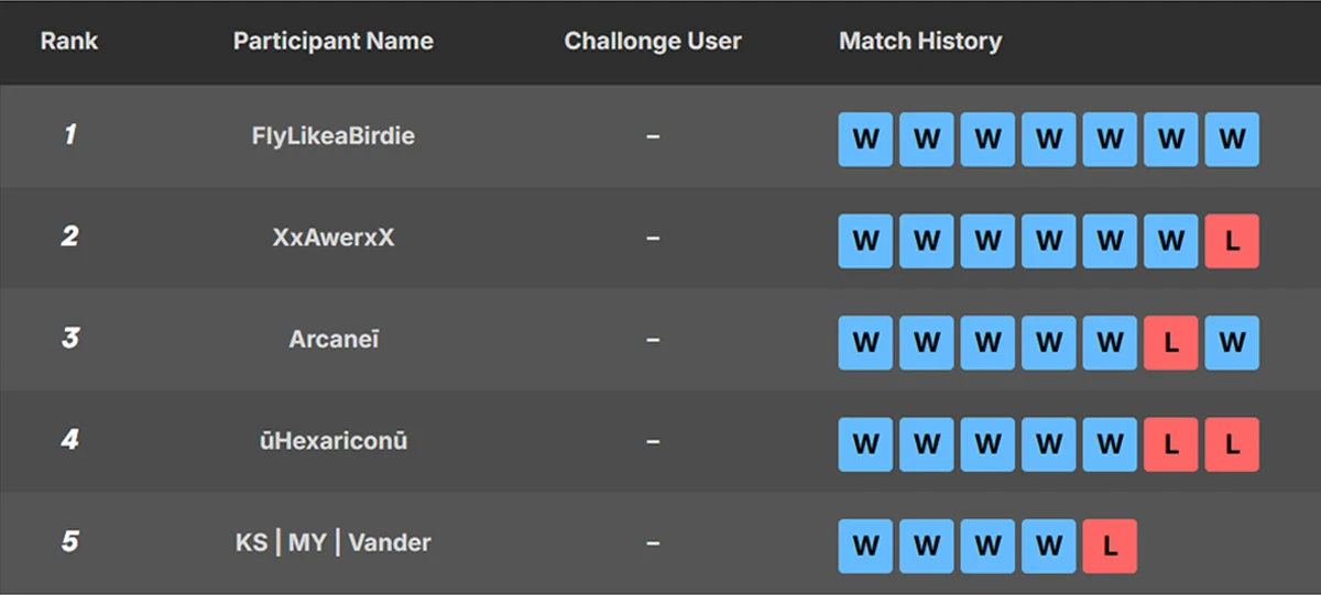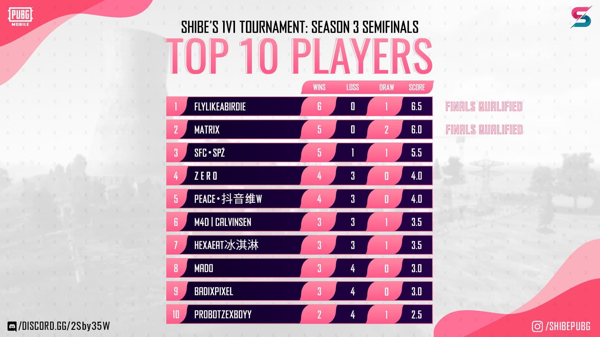 Shibe’s 1v1 Tournament is designed to test individual players’ skills in 1 versus 1 TDM matches. With each season, the number of participants grew rapidly, starting with 70 players in the first season and reaching more than 400 by Season 5. Typically, players would go through single elimination and the top 10-15 players, depending on the season, would go through a Swiss system of 7 rounds. Finally, the top 2 players of the semi finals would fight in a best of 3 to win the tournament.