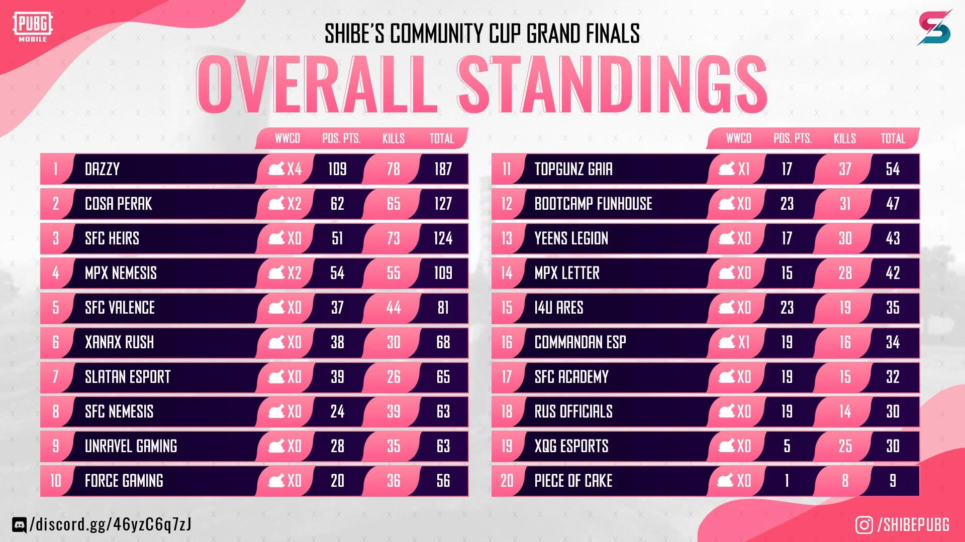 Shibe’s Community Cup is a tournament that brings together competitive teams from across Asia. Each season features numerous tier 2 teams competing over the course of three weeks in multiple stages. The competition culminates in a live streamed grand final, with official casters and broadcasted on Shibe’s YouTube channel.