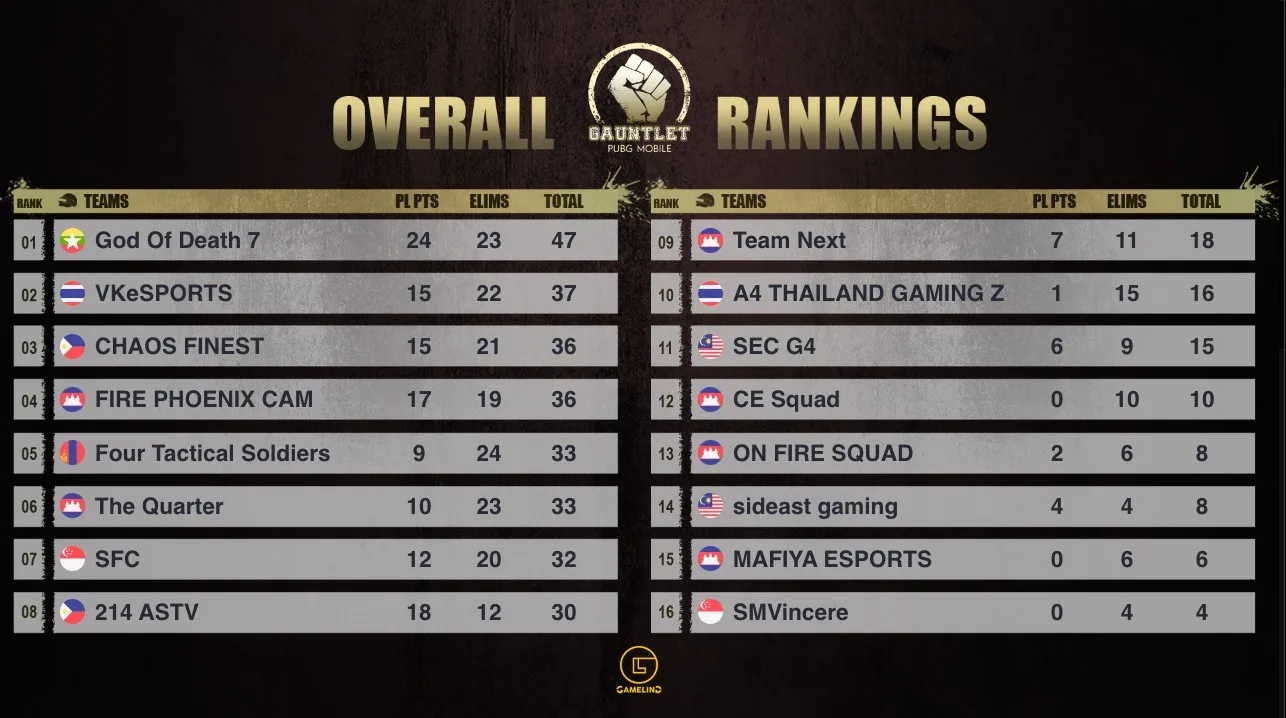 Published: 1 Apr 2024GamelinG Gauntlet Season 3 was a regional online PUBG Mobile tournament held in February 2024, mainly targetting teams in Southeast Asia and pro teams that plan to participate in the PUBG Mobile Challengers League SEA Spring Split. The event featured a modest $1,000 USD prize pool, and attracted a competitive lobby of semi-pro teams from across the region.